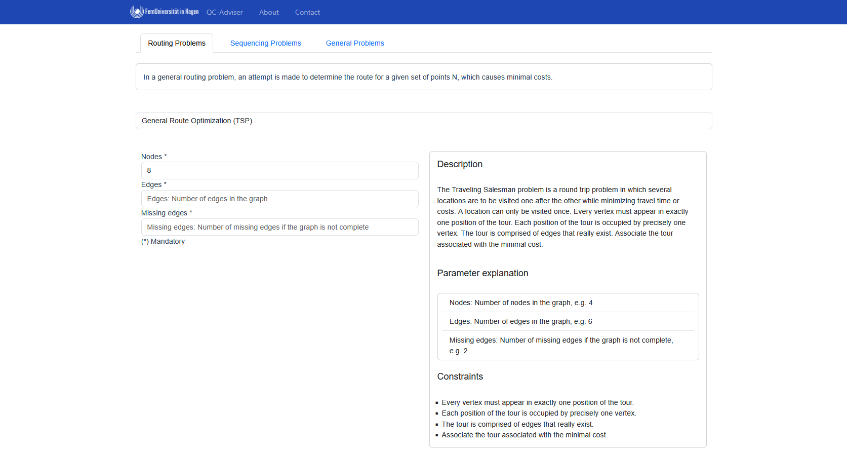 The QC-Adviser supports the selection of suitable quantum computing technologies (hardware or cloud services) to solve real problems in the field of production and logistics on quantum annealer.
